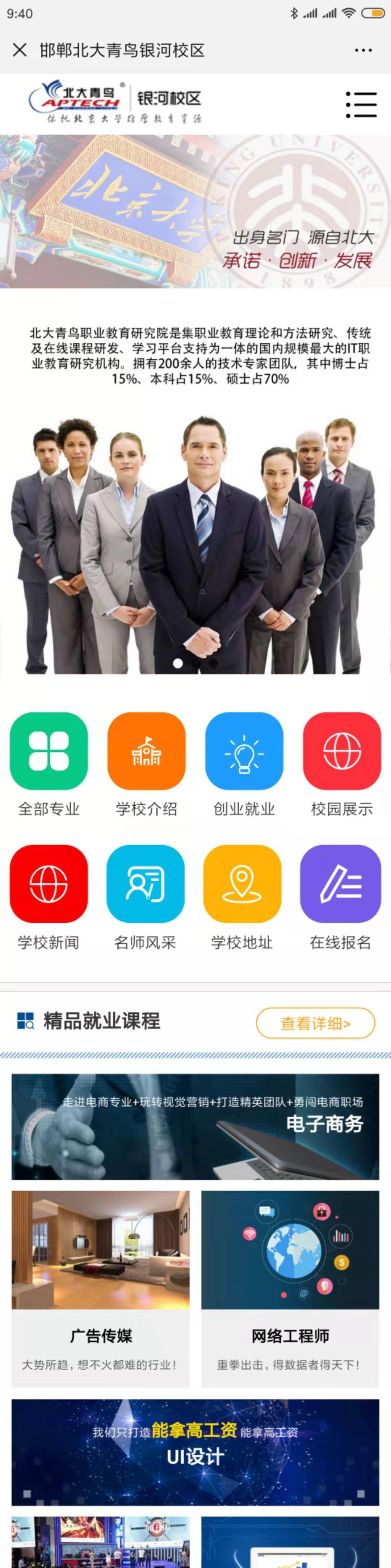 新聞摘要:邯鄲冀南新區銀河中等專業學校,是北大青鳥總部在邯鄲地區唯一授權培訓中心:北大青鳥(邯鄲)銀河校區。學校位于邯鄲冀南新區緊鄰邯鄲機場,學校開設了啟蒙星、軟件工程、Ui 設計、網絡工程師、游戲動漫、廣告傳媒、電子商務,是邯鄲地區規模較大的IT學校。
